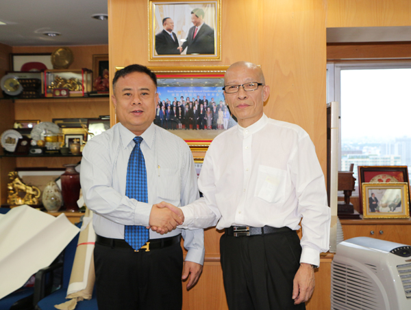 华南师范大学国际文化学院院长吴坚偕华南师范大学客座教授、中国著名书法家崔仁辉;华南师范大学国际文化学院留学生办公室主任戴相斌;华南师范大学校友工作办公室主任仲铭锦一行,借来泰参加“华南师范大学泰国校友会”成立庆典之机,于2013年11月23日下午访问泰国华人青年商会,受到青商会会长李桂雄,顾问李文莉,副会长张创标、林伟、黄懿光,会长助理叶沐强、王少青,主任马旭森,常委李桂慈,总干事黄成等的热烈欢迎和热情接待。