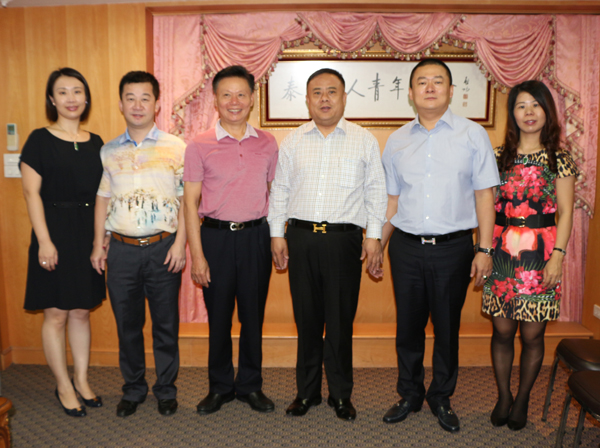 2013年11月27日,中国深圳市政协常委、深圳市新的社会阶层人士联合会会长、著名青年企业家、本会海外顾问马少龙暨夫人、本会海外顾问赵质平暨夫人,原深圳市劳动和保障局局长,深圳市老龄服务事业产业联合筹委会执行主任管林根等抵泰华青商会访问,受到会长 的热情接待,并就两地老年龄人养老及服务做充分交流。图为:李会长与马少龙、赵质平、管林根等合影。