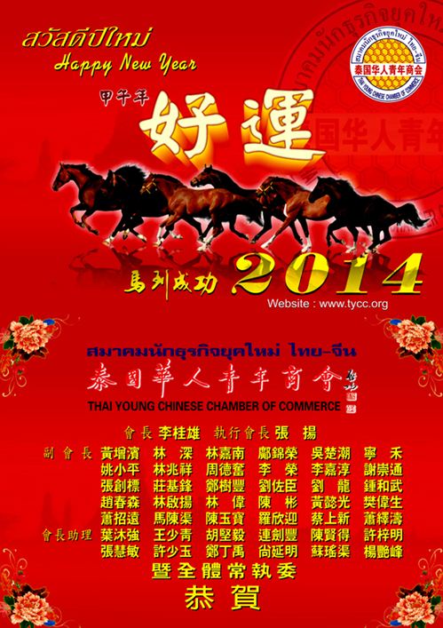泰国华人青年商会会长李桂雄暨全体同仁衷心祝愿您:新年快乐、身体健康、家庭幸福、事业进步、财源广进、马年吉祥!