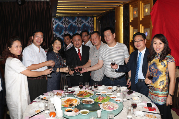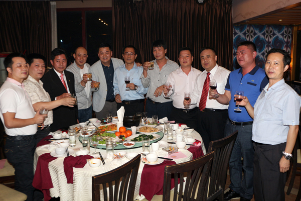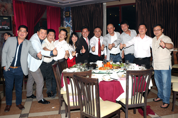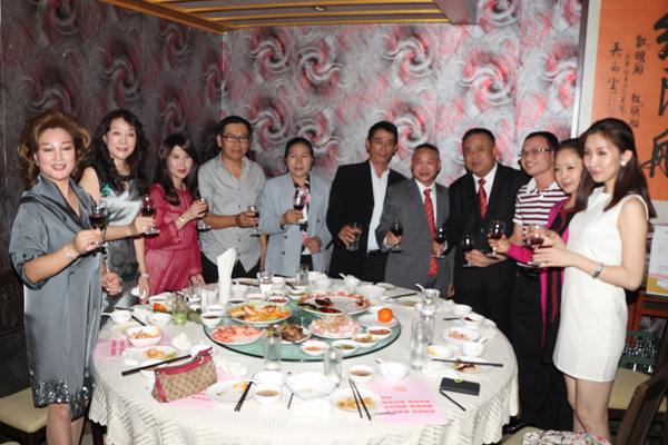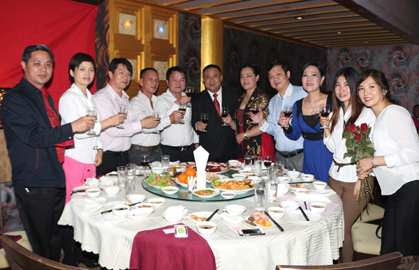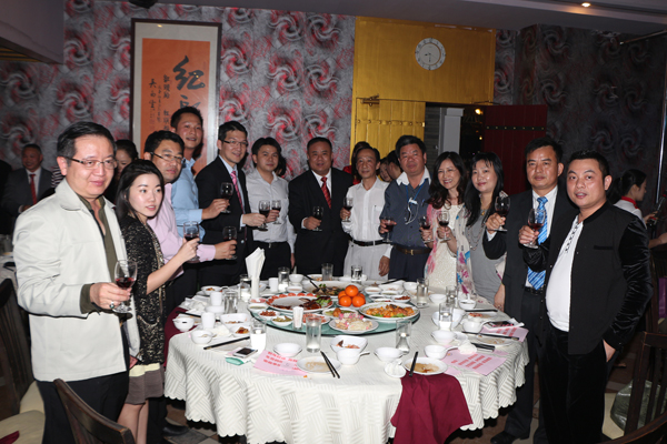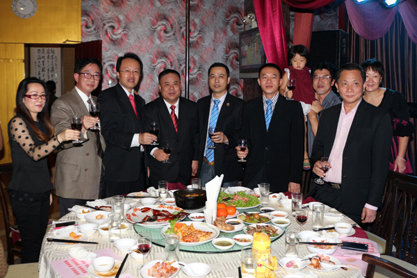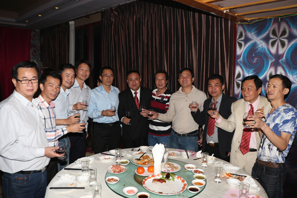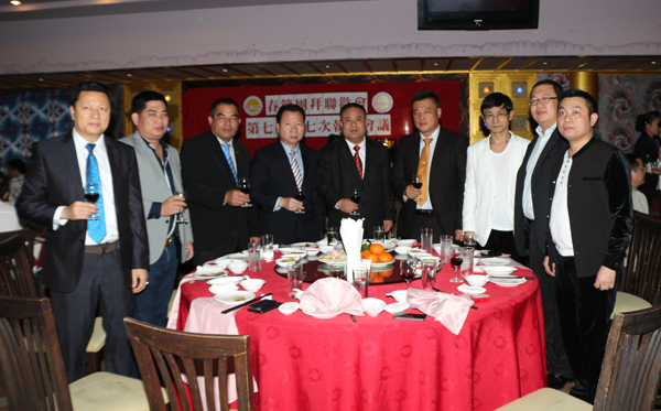 李桂雄会长(中)与各位副会长在宴会上合影。