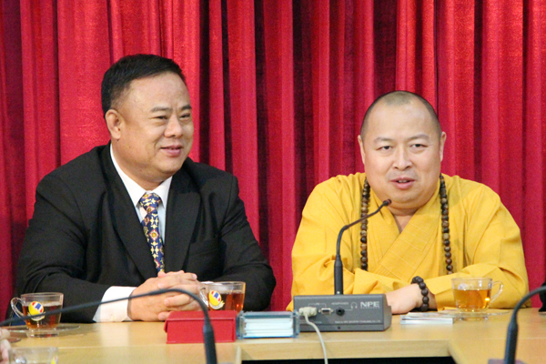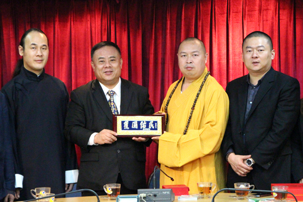 印顺大师的金玉良言,谆谆教诲,赢得场上阵阵掌声。最后,宾主互赠纪念品,并留下珍贵镜头。