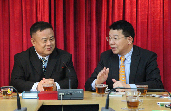 李桂雄会长致词欢迎张贻山市长一行的到来,并简介了泰国华人青年商会的概况及成立十四年来发展历程。他说:青年商会与祖国的关系十分密切。成员大部分是来自祖国大江南北、涵盖中国各省市自治区的旅泰新华侨新移民,广东籍、福建籍居多。大家都有一颗热爱祖国家乡的赤子之心,在各自事业有成之时,都不忘积极回祖国家乡投资建设、参与发展。青商会的创会宗旨是促进泰中两国友好往来,为两国的文化交流、经贸合作充当重要桥梁。今天张市长亲临青年商会,来看望我们,是对我们(特别是对青商会石狮市籍成员)的鼓励。虽然近期政局不太稳定,但华商来泰国旅游、投资等各方面影响不大。特别是泰中友好和贸易往来的政策不会改变的。望张市长将这边的实际情况带回国内去,让企业家们消除顾虑,坚定信心,一如既往来泰投资发展、旅游观光。最后,祝张市长一行访泰任务圆满成功,万事如意。