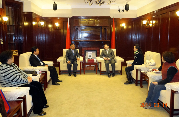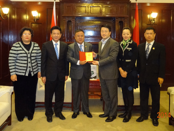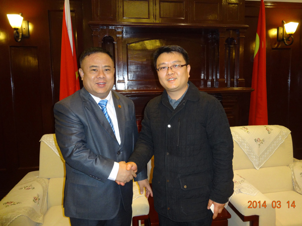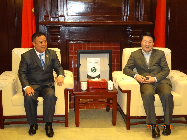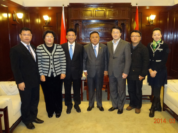 2014年3月14日上午,泰国华人青年商会会长李桂雄率领本会顾问叶子,副会长赵春森、黄懿光一行访问上海共青团市委、上海市青年联合会,受到了上海团市委书记夏科家;上海市青联主席徐彬、秘书长栗芳、副秘书长王晓农等的热烈欢迎,双方进行了亲切的交谈。上海团市委书记夏科家表示热烈欢迎泰国华人青年商会李桂雄会长一行的来访,介绍了上海团市委这些年来的工作情况,同时夏书记赞扬了泰国青商会在李桂雄会长的领导下和各位同仁的努力下为两国的友好往来和文化、经贸交流作出的巨大贡献。上海市青联主席徐彬也强调了上海市青联和泰国青商会是多年的老朋友了。双方不只是会务的交流密切,就是会员之间的来往也是非常频繁。希望双方再接再厉,共同为两地的友好交流及各领域的合作做出更大的贡献。夏书记也非常关心和重视泰国目前的局势以及有关情况。他认为更要加强上海青年企业家与泰国青年企业家在经贸上的和谐互助和合作。