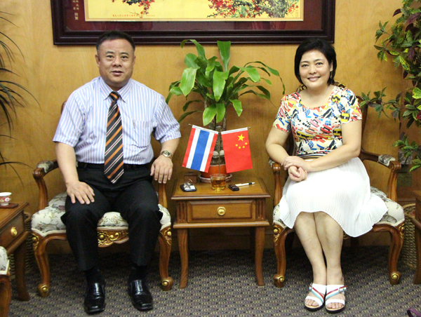 李桂雄会长对马莉校长由一位普通的教师奋斗成为中国民办教育界中的巾帼豪杰之一,表示十分敬佩。同时对马校长说的“已经爱上了泰国”一语表示感动。他指出马校长此行不但进一步促进泰中两国的友好,而且促进两国的文化交流,特别是专诚送子来泰深造。他简介了青年商会的成立历程和发展近况,并说:泰国是世界上华侨华人最多的国家。泰国大约有三分之一的人口是华人华侨华裔。华人在泰国的政治、经济等各方面均占有一定的地位和起着重要的作用,对居住国和祖籍国的经济建设、社会发展贡献极大。目前泰国局势虽然不稳定,但相信很快就会雨过天晴,因为泰国是个法律健全、民心淳朴的国家。泰国政府及民间与中国的关系非常密切。国外商企来泰投资、旅游等各方面皆有保障。希望马校长有机会多做宣传,鼓励国内同胞们多来泰国考察旅游、交流合作。