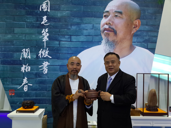 李桂雄会长与中国毛笔微书大师关柏春合影。