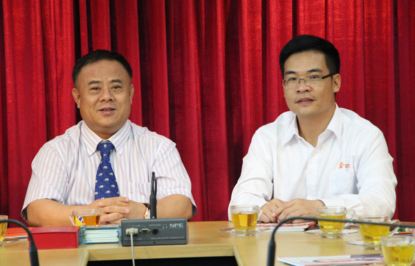 俞上林董事长代表该团成员发表讲话。他说:感谢青商会各位领导的热情接待。刚才听了李桂雄会长一番热情洋溢的发言,受益匪浅。广西易大置业投资有限公司在中国广西崇左建设广西首家东南亚风情体验式都市综合体——东盟国际城即将开业,项目集东南亚风情、免税购物、金融中心、五星级酒店、城市豪宅为一体,总建筑面积37万平米,商业面积18平方米,以东南亚风情、免税广场为主要商业中心,是中国边境上规模最大、质量最高、享受最开放政策的项目。2013年1月底项目开始之初期,就引进泰国风情演绎、泰国特色餐饮以及泰国特色商品等。他希望通过此次拜访,增进彼此友谊,加强合作,获取更多经验;借助青商会这个大平台,为两地企业家创造更多的合作商机。