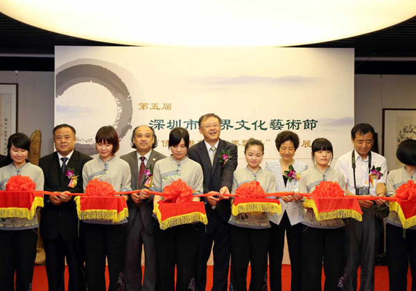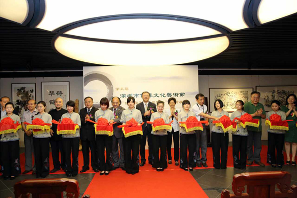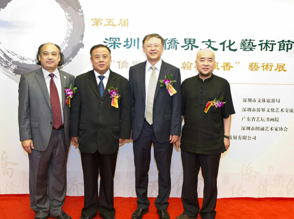 泰国华人青年商会会长李桂雄应邀出席了开幕式,与深圳市委统战部副部长、深圳市侨联主席马勇智,三滴水书画院院长、深圳市饶平商会会长谢学源等领导和艺术家们共同主持剪彩仪式。