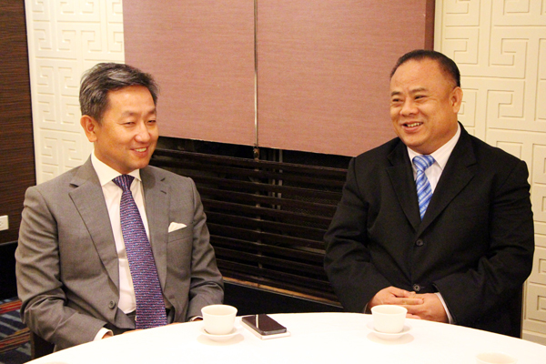 张益明公使与李桂雄会长亲切座谈。