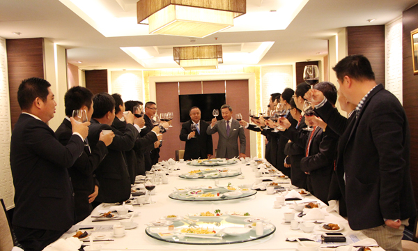 青商会诸位领导向张益明公使敬酒。