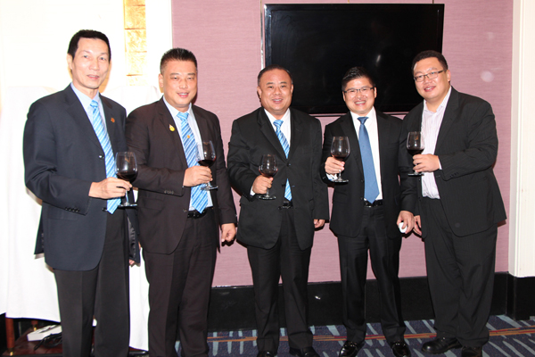 李桂雄会长、张扬执行会长、黄增滨常务副会长、邝锦荣常务副会长、宁禾常务副会长在宴会上合影。