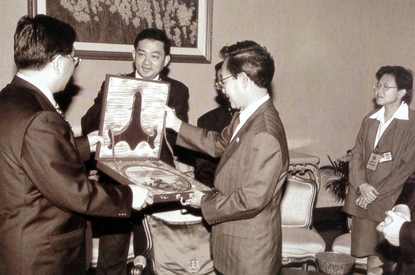 2000年中国领导人赠送陶瓷微书国礼予泰国总理川•立派。