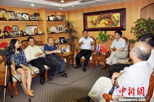 图为泰国华人青年商会会长李桂雄接受中国新闻社“新世纪丝绸之路华媒万里行”采访团采访。 黄艳梅 摄