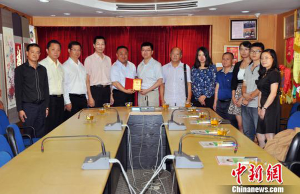 图为泰国华人青年商会会长李桂雄与中国新闻社“新世纪丝绸之路华媒万里行”采访团合影。 黄艳梅 摄