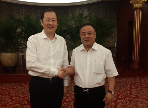天津市市委常委、市委统战部部长刘长喜与李桂雄亲切握手。