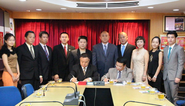 泰国华人青年商会会长李桂雄与海南大禾置业有限公司执行总裁周希祥签署友好合作协议书。