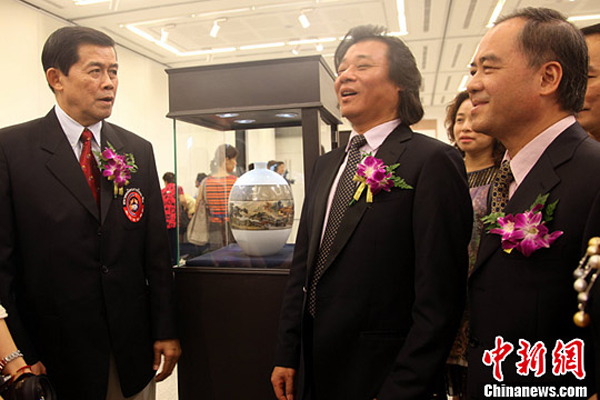 中新社曼谷7月26日电 (记者 余显伦)中国工艺美术大师王芝文赴泰国陶瓷微书作品展,26日在曼谷中国文化中心揭幕。