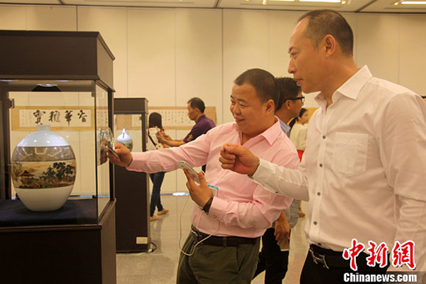 王芝文是中国工艺美术大师,其作品将中国两大最具代表性的艺术形式,陶瓷和书法结合在一起,且用难度极高的微书进行创作,使微书与瓷器完美搭配,既继承了传统陶瓷工艺的独特风格及艺术精髓,又提高了艺术欣赏和收藏价值。王芝文当天展出的39件作品,都是其心血之作。