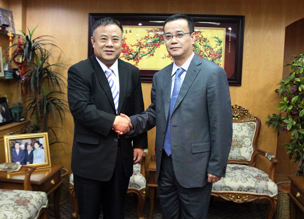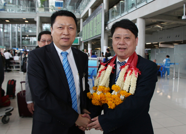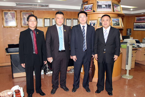 李桂雄会长在会议上致欢迎词,他说:很高兴终于迎来了来自祖国家乡的父母官林定亮区长及潮阳友好代表团一行。我首先代表泰国华人青年商会全体成员和在座青商会的各位领导,对林区长和访问团的莅临表示衷心感谢和热烈欢迎,同时请转达我们对区委陈新造书记的问好。青年商会成立于2000年7月1日,一直以来,始终坚持着三个宗旨。一是促进泰中两国的友好、文化交流、经贸合作。二是为旅泰新华侨、新移民在泰国争取合法权益;三是推动华文教育、为侨服务,积极构建泰国侨商与祖国企业家互相投资合作的平台。青商会成员大部分来自中国各省市、自治区在中国改革开放三十年来旅泰的新华侨新移民,少部分为泰籍华裔。大家凭着自己的智慧、才能、勤奋,继承了老一辈艰苦奋斗、饮水思源、达不忘本的精神,不但创出了各自的一片天地,还团结一致、互相帮助、互相支持,积极参与祖国家乡的经济建设。当祖国人民的生命财产受到自然灾害威胁、袭击时,青年商会的成员们积极伸出援助之手、献出爱心,用实际行动表达对灾区人民的关心和亲切慰问之情。泰国的华侨华人众多,约占总人口三分之一,其中有百分之六十属潮籍。潮人在泰国政治、经济等方面都占有一定的地位和起着重要的作用。最难能可贵的是几乎所有的华侨华人都有一颗拳拳的爱国之心。中国梦就是华侨华人的梦,实现中国梦就是实现广大华侨华人的梦。所以,祖国和家乡的繁荣发展就是泰国华人青年商会最大的推动力。近几年来,我们回祖国家乡探亲旅游、考察访问时,见到“大潮阳”(潮阳区与潮南区)的经济各方面的发展迅速,前景光明,深感欣慰和鼓舞。我认为林区长此次率团访问泰国,意义重大,不但是来看望我们,关怀了解旅泰新华侨新移民工作生活情况,而且推动了两地企业家的往来、互助。习近平主席提出打造“21世纪海上丝绸之路”战略构想,对于华侨华商最多的泰国来说是一大机遇。6月份,我们与区陈书记、林区长等向汕头市委陈茂辉书记汇报练江新城投资框架协议时,陈茂辉书记说“打造海上丝绸之路,主要面对东南亚和东盟地区,潮阳要利用广大华侨的资源优势,共同建设侨乡的新面貌、新形象。汕头与东盟等经济组织合作乃大势所趋,是国家经济发展战略需要。”我们作为海外华侨也要积极响应,投资合作建设“练江新城”,为家乡建设出谋献策,发挥各自的优势,以灵活、便捷的民间方式,在推动中国内地企业尤其是民营企业中发挥桥梁和纽带作用。共同推进潮阳经济大发展。目前泰国局势稳定,经济发展正在稳步向前发展。“2015年东盟一体化”的实现,对泰国这个东盟国家中心地带,将会带来无限商机。所以,希望通过林区长此次来访,能增进两地企业家的友谊和合作。最后祝愿:代表团访泰任务圆满成功,林区长及各位身体健康,万事如意。