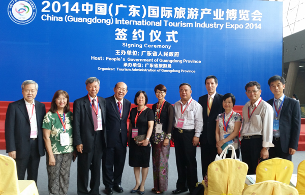 由广东省人民政府主办、广东省旅游局承办、广州广之旅国际会展服务有限公司协办的“2014中国(广东)国际旅游产业博览会” (简称“旅博会”),于8月29日至31日在广州广交会琶洲展馆隆重举行,泰国华人青年商会会长李桂雄,副会长邝锦荣、谢崇通等参加了此次博览会。