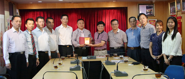 应泰国政府邀请,广东省农业科学院李康活副院长、农业资源与环境研究所徐培智副所长、水稻研究所周少川研究员、植物保护研究所李敦松研究员一行,在泰国农业部稻谷大米司三位官员和泰国农业部驻广州总领事馆官员的陪同下,于2014年9月24日下午访问泰国华人青年商会,受到李桂雄会长、邝锦荣副会长、张创标副会长、黄懿光副会长、江泽锋会长助理、许俊龙主任、黄成总干事等的热烈欢迎。