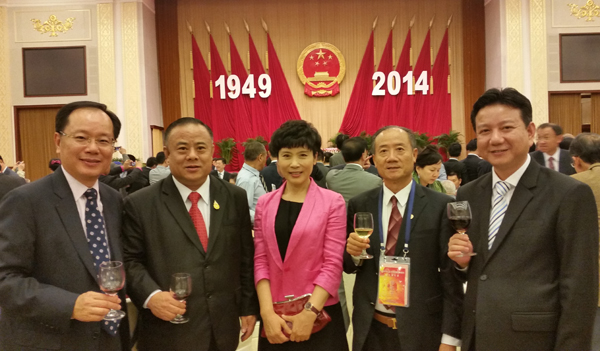 9月29日晚,中国人民政治协商会议全国委员会办公厅、中共中央统战部、中国国务院侨务办公室、中国国务院港澳事务办公室和中国国务院台湾事务办公室在人民大会堂宴会厅联合举行国庆招待会。部分在京的中共中央政治局委员、书记处书记,全国人大、国务院、全国政协领导与李桂雄会长等海内外嘉宾欢聚一堂,共同庆祝中华人民共和国成立65周年。