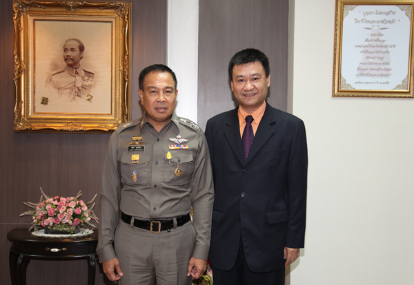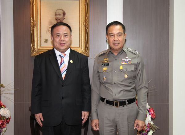 泰国警察总署署长颂育•奔攀曼警上将与泰国华人青年商会总干事黄成合影。