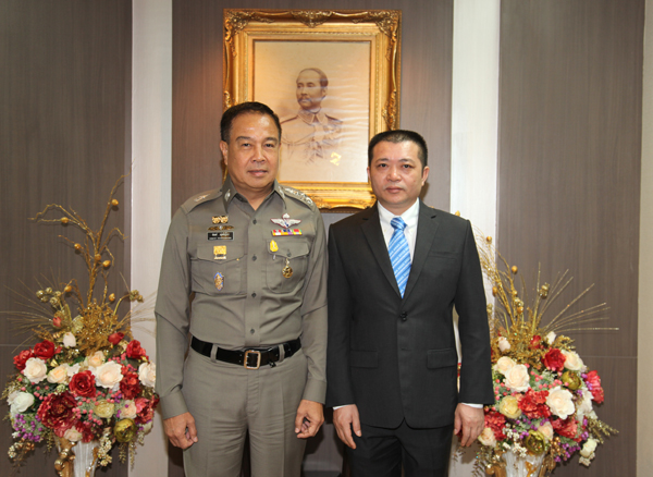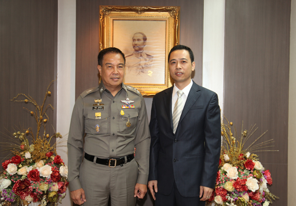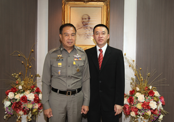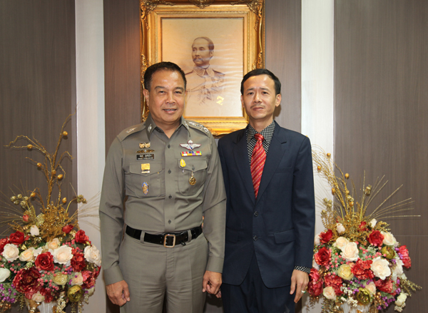 泰国警察总署署长颂育•奔攀曼警上将与泰国华人青年商会主任张楚南合影。