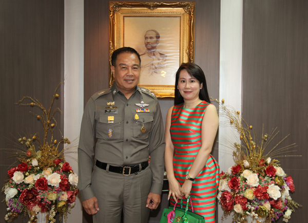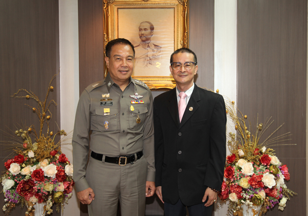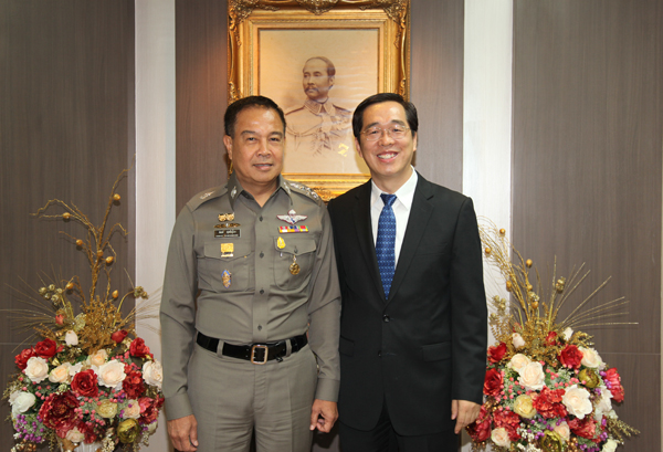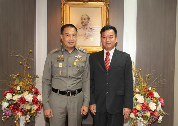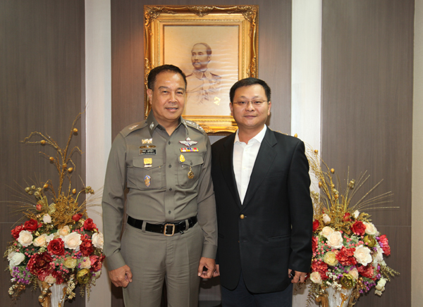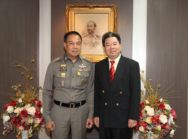 泰国警察总署署长颂育•奔攀曼警上将与泰国华人青年商会主任翁泽勤合影。