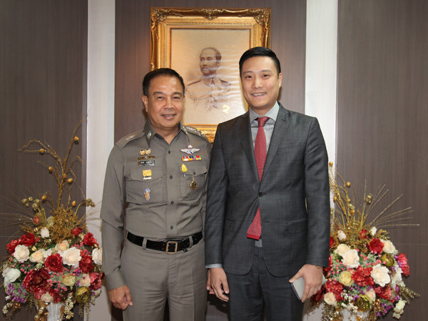 泰国警察总署署长颂育•奔攀曼警上将与泰国华人青年商会副会长樊伟生合影。