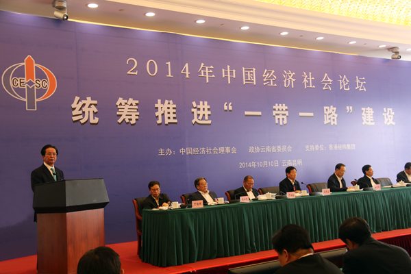 很高兴参加2014中国经济社会论坛。在国家精心筹划、大力推进“丝绸之路经济带”和“21世纪海上丝绸之路”重大战略之际,召开这样一个以“统筹推进‘一带一路’建设”为主题的会议,组织中国经社理事会的专家、学者和政协委员就此为题进行研讨,发表真知灼见,很有意义!