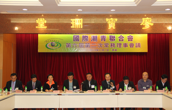 国际潮青联合会第六届第二次常务理事会议,于2014年11月7日下午在香港潮州会馆会议厅顺利召开。会议由国际潮青联合会理事会理事长李桂雄(泰国华人青年商会会长)主持。来自深圳潮青联谊会、加拿大温哥华潮州同乡会、马来西亚潮州公会联合会青年团、新加坡潮州八邑会馆、泰国潮州会馆、汕头市海外潮籍青年联谊会、广东省潮人海外联谊会青年委员会、天津市潮人海外联谊会、香港潮商互助社、香港潮州商会、海南省潮汕商会青年委员会、汕尾市青年企业家协会等40多位代表共同参会。出席会议的国际潮青主要领导有:赵利生会长、李桂雄理事长、赵汉根名誉会长、李奕标名誉会长、陈辉明副理长、李富新副理事长、林炯副理事长等。