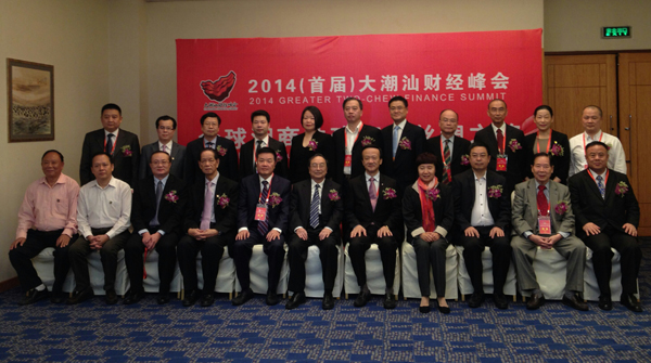 2014(首届)大潮汕财经峰会于11月8日在广东省汕头市举行。出席的国家领导人和重要贵宾有:第十届全国人大常委会副委员长蒋正华,大会共同主席、中国侨联副主席、澳门潮州同乡会会长刘艺良,国务院侨务办公室原副主任张伟超,中国新闻社副社长兼副总编辑夏春平,广东省人大副秘书长郑红女士,汕头市委副书记孙光辉,汕头市人大常委会副主任黄晖阳,汕头市政协副主席许瑞明、谢铿、徐宗玲,汕头大学原党委书记、广东历史学会副会长黄赞发,北京潮商会会长张章笋,香港潮州商会会长张成雄,澳洲潮州同乡会主席周光明,泰国华人青年商会会长李桂雄,美国南加州潮州会馆会长欧佳霖,2014大潮汕财经峰会执行主席陈少斌,汕头大学商学院院长吕源,广东猛狮电源科技股份有限公司董事长陈乐伍,信盈集团董事局主席黄澍新,圣济堂制药集团总裁丁林辉,海南潮汕商会会长陈建城,潮州华丰集团董事长梁国湛,柏亚国际集团董事长吴桂标,广东省澄海商会会长陈彦文,广东安德力新材料有限公司董事长王丹旭,天津潮汕商会荣誉会长翁锦辉等著名潮商。