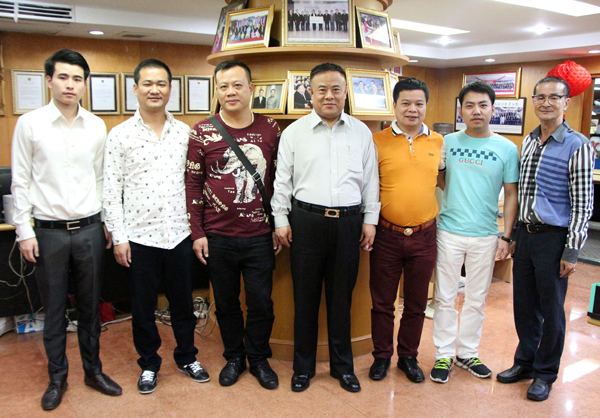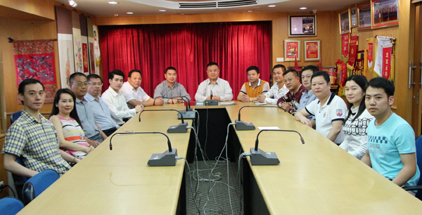 泰国华人青年商会海外顾问陆观军、韩松胜、萧奕求、钟楚江、黄武忠、李友才等与李桂雄会长在会议室亲切交谈。