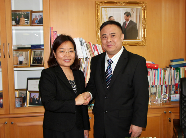 李桂雄会长与高文宽参赞亲切握手。