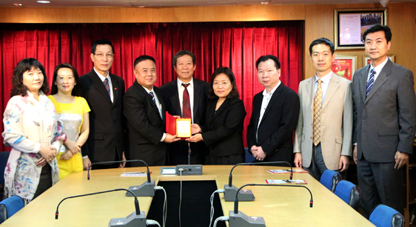 李桂雄会长赠送纪念品予张佩东参赞。