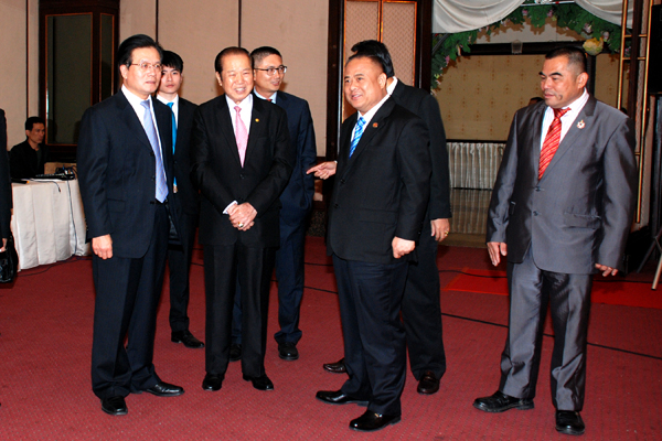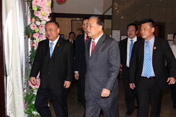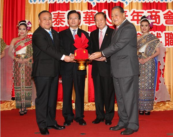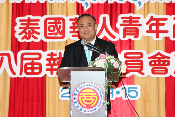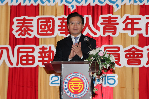 前不久,李克强总理到泰国出席大湄公河次区域经济合作领导人会议,并与巴育总理举行会见,随后巴育总理访华。在此期间,双方签署了一系列重要合作协议和备忘录,内容涵盖高铁、农产品、金融、人文交流等方面,中泰两国务实合作迎来更广阔的发展空间。今年是中泰建交40周年。双方将以此为重要契机,深挖合作潜力,不断开拓创新,大力推动铁路等一批具有战略意义的重大项目,使中泰务实合作迈上新台阶,造福两国和两国人民。“天高任鸟飞,海阔凭鱼跃”,希望各位青年侨领、侨商会抓住机遇,一方面规范商会内部管理,努力促进和谐侨社建设;另一方面,诚信守法经营,不断提高自身在泰华社会的地位和影响力,为泰国社会的繁荣与发展,为中泰友好与务实合作发挥更加积极的作用,作出更大的贡献。