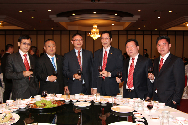 仪式圆满,设福宴欢聚,著名华语歌星姚立森老师、余葆红老师、方舫、青商会执委等高歌献艺助兴,金牌司仪方舫、现场翻译李仁良的出色工作,均为晚会润色生辉。欢宴会上,大家把盏言欢,欢谈畅饮,举杯互祝,高潮迭起,洋溢着欢庆温馨亲情氛围。