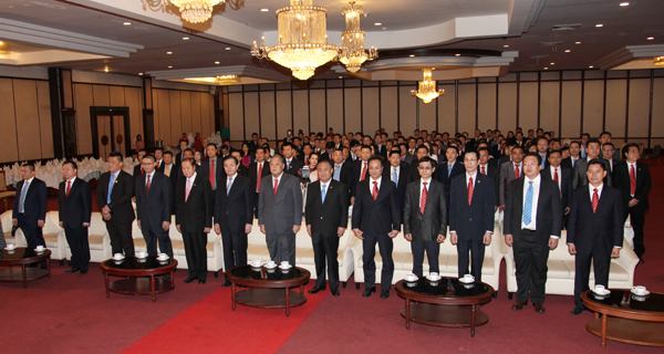 就职典礼前,素坤攀市长、宁赋魁大使、刘锦庭主席、朱伟东参赞、韩斌主任等嘉宾与本会李桂雄会长、常务副会长、副会长、会长助理、常务执委、执委近两百人合影留念,留下难忘珍贵的镜头。