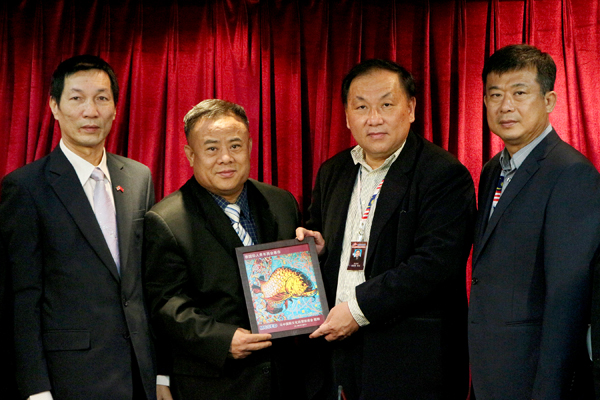陈泰隆会长赠送纪念品予李桂雄会长。
