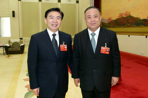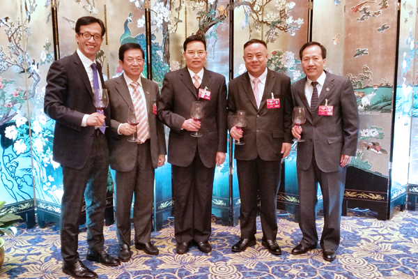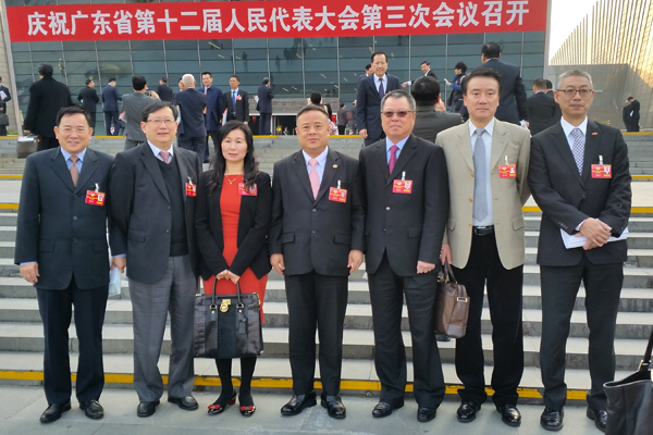 王荣阁下荣任广东省政协主席,李桂雄会长在政协第十一届第三次会议上衷心祝贺并合影。