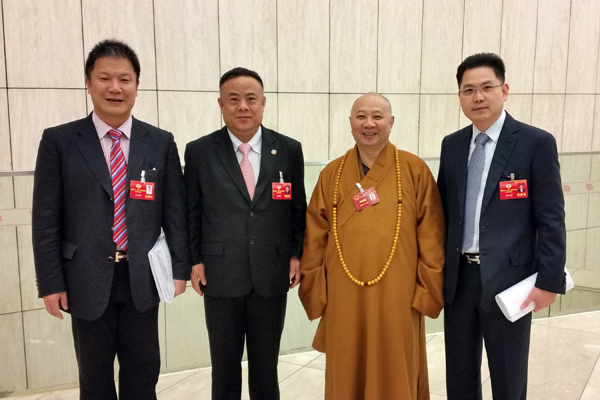 李桂雄会长、马伟鹏顾问、陈灿标顾问与中国佛教协会副主席明生大师合影。