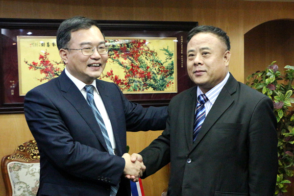 卢淳杰市长说:此次访泰主要有三大目的。第一,是响应国家“一带一路”精神的号召,乘中泰建交40周年的契机,带领潮州的企业家们到泰国考察、访问。积极与泰国的企业家们建立联系,促进潮州企业家与泰国企业家们的合作与项目对接。借此次拜访青商会之际,诚邀青商会的同仁参加明天我市在曼谷举办的贸易与投资环境推介会。第二,加深潮州市与曼谷市的友好关系。潮州市与曼谷市互为友好城市,此次访泰,意在加深两地的友好关系与合作交流。第三,是访问泰国有关社团,拜访多位侨领,并代表潮州市270多万人民对侨胞们致以亲切的问候。多年来,包括泰国华人青年商会企业家在内的在泰潮籍人士、侨胞乡亲齐心协力,心系祖国和家乡,为祖国和家乡建设贡献良多,在此,对大家的支持与付出表示衷心的感谢。早在15年前,李会长要成立青商会之时,与我多次探讨要怎样发扬老一辈华侨的优良传统,弘扬和推广中华文化和潮汕文化。青出于蓝而胜于蓝,青商会在传承老一辈华侨的刻苦耐劳精神的同时,大规模参与社团建设、祖国和家乡经济和和平统一事业建设,如今青商会日渐发展壮大,已成为中泰两国友好关系、文化交流和经贸合作的重要桥梁,我感到非常高兴。并诚邀李会长及青商会同仁参加今年9月在潮州举办的第六届粤东侨博会。祝愿青年商会会务蒸蒸日上,商会企业家们事业飞黄腾达。