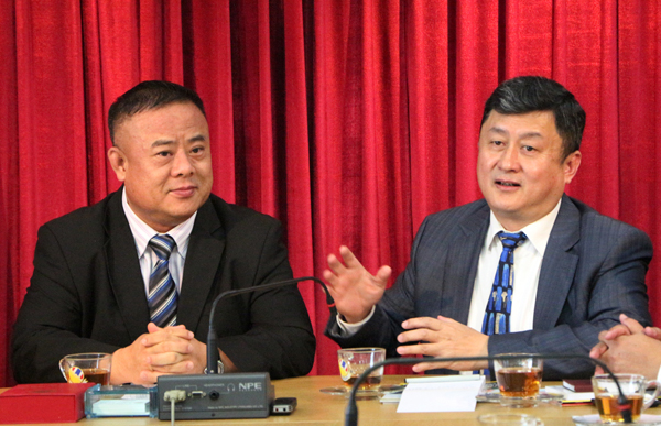 李闻海副总裁致辞道: 非常高兴访问泰国华人青年商会,感谢青商会的热情接待和欢迎。你们多年来不仅在深化两国友谊,更重要的是两国的经贸合作方面,李桂雄会长和青商会的企业家们做出了卓越贡献。此前由李会长牵线搭桥合作、由正大集团投资建设的湛江“社会主义新农村”项目第一期已圆满竣工。这一次,在研究和落实“一带一路”伟大精神的基础上,带领各位企业家来泰国考察、访问,得到政府和泰华侨社的大力支持,希望此行能促成中泰两国企业家合作的新起点。今天第一批企业家来泰国考察、访问,很快就会有包括立白集团、水密码护肤集团在内的第二批企业来泰考察,力求在落实“一带一路”的精神基础上,实现更大规模的来泰投资置业,促进中泰两国“一家亲”关系、经贸交流和大范围的投资合作。