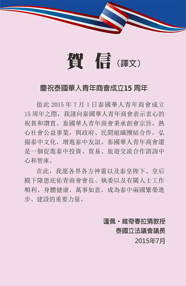 泰国华人青年商会祝贺泰国多位将军获御赐荣升官衔