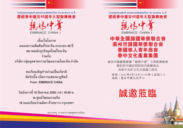 庆祝泰中建交40周年大型歌舞晚会 “亲情中华”诚邀莅临