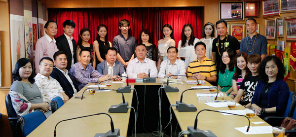 2015年8月17日下午,“广州市侨联亲情中华艺术团”访问泰国华人青年商会。代表团成员有,团长:广州市侨联副主席卢启明;团员:广州市侨联主任科员申俊杰,广东歌舞剧院有限公司歌唱演员唐彪,广州市文化艺术管理中心歌唱演员汤莉,广州市文化艺术管理中心魔术演员王冬歌,广东歌舞剧院有限公司歌唱演员潘旭,广东歌舞剧院有限公司歌唱演员许岚岚,广东省艺术研究所演出员顾蓓蓓,广东民族乐团演奏员潘伟文,广东歌舞剧院有限公司舞蹈演员吕锐,广东歌舞剧院有限公司舞蹈演员刘岩鑫,广东歌舞剧院有限公司舞蹈演员雷蕾,广东歌舞剧院有限公司舞蹈演员王瑶,广东歌舞剧院有限公司舞蹈演员樊婧雅,广东歌舞剧院有限公司舞蹈演员卢家欢。受到泰国华人青年商会会长李桂雄,常务副会长林嘉南、邝锦荣,副会长钟和武、黄懿光、马文钦,会长助理许少玉、黄志乾,主任许俊龙,总干事黄成等的热情欢迎和接待。