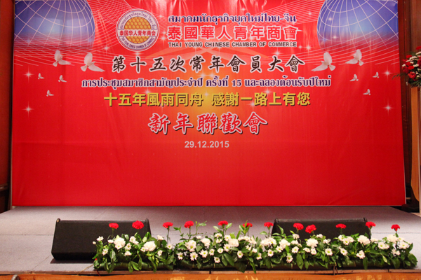 “十五年风雨同舟,感谢一路上有您”,泰国华人青年商会第十五次常年会员大会,暨送旧岁迎新年庆祝大会,于12月29日晚,假曼谷是隆路假日大酒店宝伦厅隆重举行。