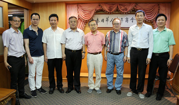 2016年4月12日,民盟中央副主席、上海市委会主委,上海市人大常委会副主任、全国政协常委、上海潮汕联谊会名誉会长郑惠强,上海潮汕联谊会会长陈振鸿,上海潮汕联谊会副会长、上海全通金融谷集团公司董事长林振雄,上海潮汕联谊会副秘书长、《新民晚报》主编陈向阳一行莅临泰国华人青年商会访问,受到泰国华人青年商会会长李桂雄,副会长邝锦荣、赵春森,主任许俊龙,总干事黄成等的热烈欢迎和接待。