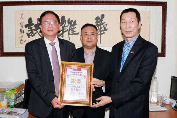 座谈结束后,李桂雄授予刘伟良《泰国华人青年商会顾问证书》,邝锦荣授予刘伟良《泰国新华杂志社荣誉社长证书》。相信有刘伟良先生这样的企业家加入,将会对青商会会务产生巨大影响,也将为泰国新一代华人华侨创业提供一个良好的平台。