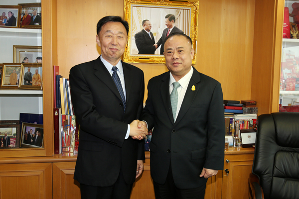 李桂雄会长首先对代表团一行的到来表示热烈的欢迎,他说,龙宇翔主席是我们商会的海外顾问,是商会的好朋友,一直以来青商会都得到龙主席的关系和支持。龙主席多年来为推动泰中文化的交流和经贸合作做出了巨大的贡献,主办承办了多场书法艺术活动和经贸洽谈会,组织了多次艺术家代表团来泰访问,是中国文化传播和祖国“一带一路”建设的领路人。随着“泰中一家亲”的不断深化,两国之间已经远远超越了友邦和近邻的关系,去年中国来泰旅游人数达到了800万人次,从今年上半年的数据来看,今年大有赶超去年之势。泰国的政治经济势头好、投资环境好,加之祖国“一带一路”战略的实施,现在越来越多的中国人来泰投资合作、旅游观光。